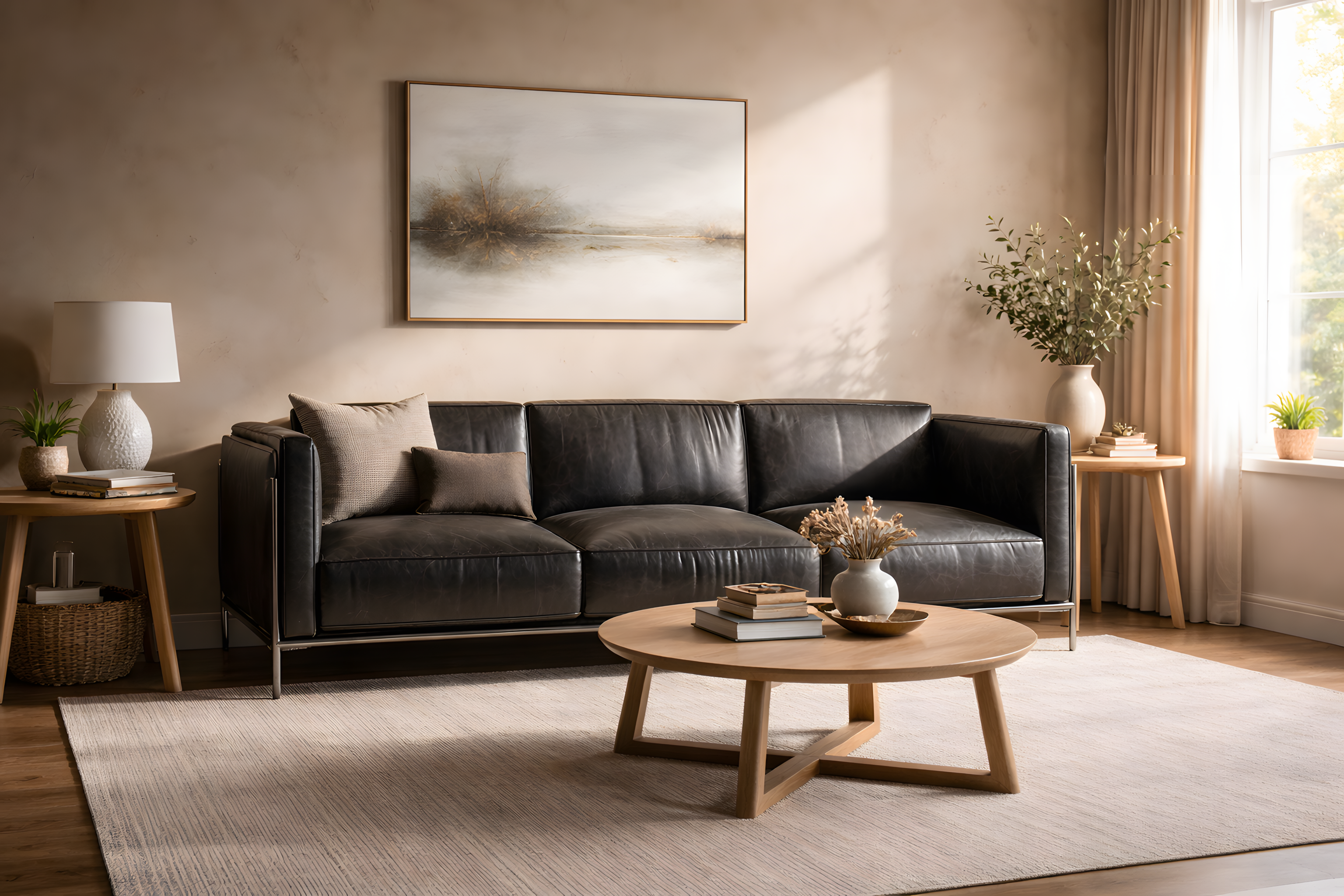 Sofá de cuero negro